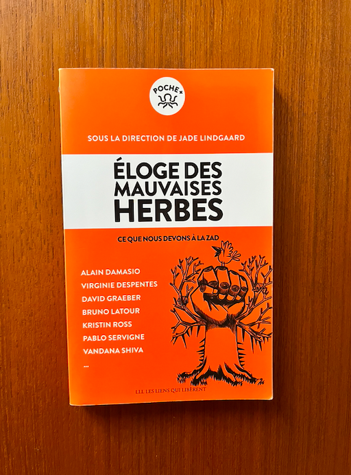 Éloges des mauvaises herbes, ce que nous devons à la ZAD (Éditions Les Liens qui Libèrent, février 2020) est un ouvrage collectif dans lequel des artistes, des intellectuels, des écrivains, apportent leur pierre à l’édifice en expliquant, en soutenant, en rendant visible certaines données et concepts.