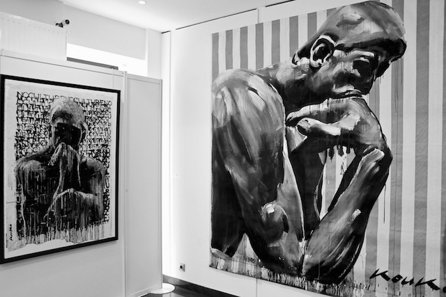 Pour réaliser ce portrait, j’ai rencontré Kouka à la galerie Taglialatella, à l’occasion de son expo « Ecce Homo ». Il a eu la gentillesse de me consacrer un peu de son temps. Temps de plus en plus précieux, maintenant qu’il est devenu papa et qu’il doit trouver de nouveaux repères. J’ai découvert un garçon adorable. Il parle avec calme mais passion de son travail et de son engagement. Je suis vraiment ravie de vous parler de lui.