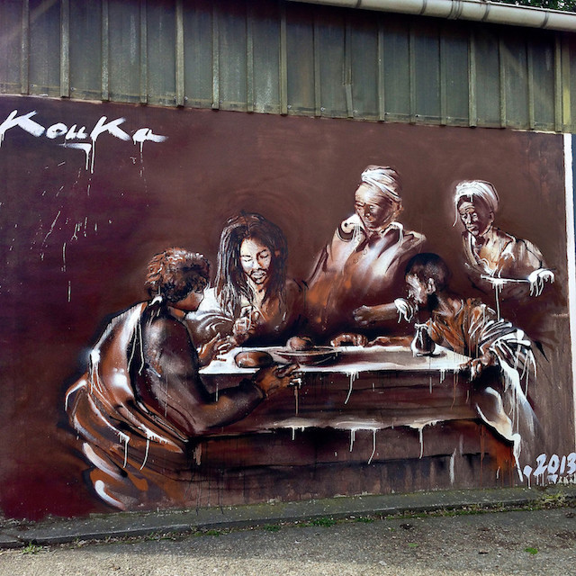 Lorsqu’il est en train de peindre, les gens viennent le voir et discutent. Ils peuvent donner leur avis immédiatement et dire s’ils aiment ou pas. Ils lui posent des questions sur ce qu’il représente. L’art de rue ouvre aux échanges et au partage. C’est essentiel pour Kouka. Grâce à son travail il crée des rencontres entre les cultures, les générations, les classes sociales.
