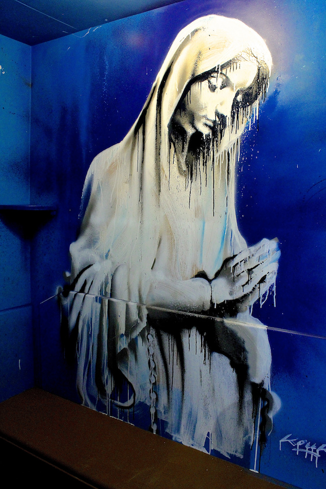 Malgré son découragement, il n’abandonne pas l’art de rue pour autant. Il cherche simplement son style. Il va le trouver grâce à sa formation artistique : il abandonne la bombe pour peindre aux pinceaux sur les murs !
