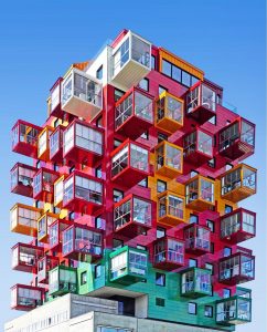Multiplier les fenêtres, peindre les façades en couleurs vives, augmenter les volumes : voici les modes de la cité arc-en-ciel de l’artiste. Ce dernier vous transporte avec ces images dans une ville-gratte-ciel minérale, futuriste et surtout multicolore. De quoi inspirer la rénovation de nos villes parfois trop grises ?